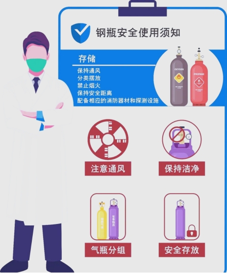 3.气体钢瓶:气瓶应固定牢靠,远离热源,分类存放。使用易燃、易爆气体(如氢气、乙炔)需配备泄漏报警装置和防爆措施。空瓶与实瓶需分开放置并有明显标识。